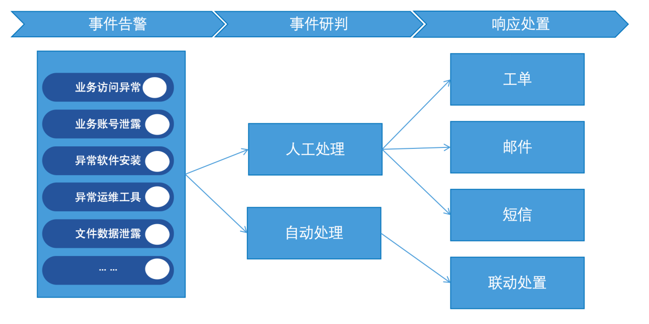 告警中心引入實(shí)時(shí)分析及工作流引擎、分析算子、業(yè)務(wù)處理函數(shù),內(nèi)置業(yè)務(wù)應(yīng)用數(shù)據(jù)泄漏風(fēng)險(xiǎn)、運(yùn)維操作風(fēng)險(xiǎn)、敏感文件盜取風(fēng)險(xiǎn)、業(yè)務(wù)賬號盜取風(fēng)險(xiǎn)四大類告警規(guī)則。具備高度靈活性,支持高度靈活性自定義告警和處置邏輯。處置中心支持短信提醒、郵件提醒、忽略、加白名、終端聯(lián)動(dòng)處置等多種處置手段。