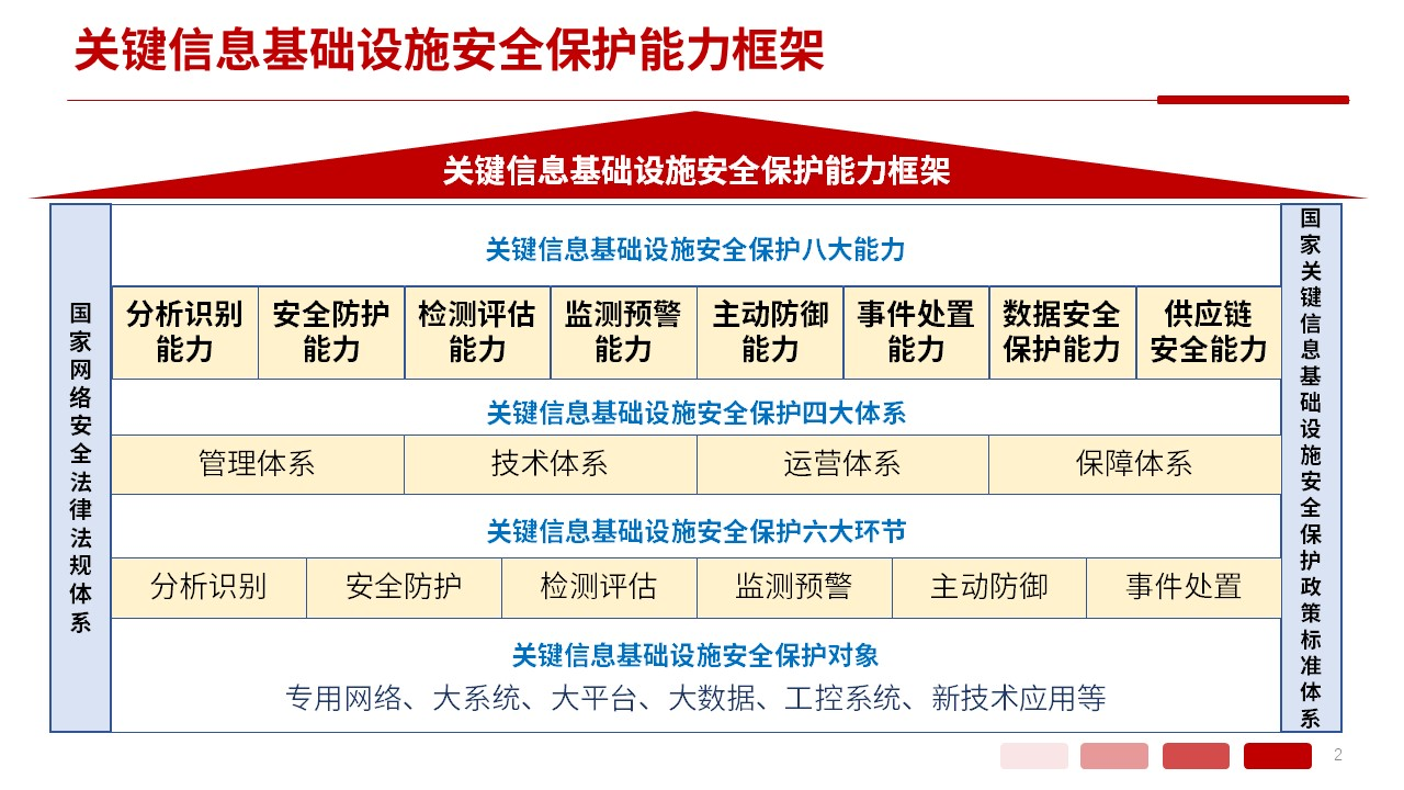 服務(wù)關(guān)鍵信息基礎(chǔ)設(shè)施,主要指公共通信和信息服務(wù)、能源、交通、水利、金融、公共服務(wù)、電子政務(wù)、國防科技工業(yè)等重要行業(yè)和領(lǐng)域,以及其他一旦遭到破壞、喪失功能或者數(shù)據(jù)泄露,可能嚴(yán)重危害國家安全、國計(jì)民生、公共利益的重要網(wǎng)絡(luò)設(shè)施、信息系統(tǒng)。有效提高重要專用網(wǎng)絡(luò)、大系統(tǒng)、大平臺、大數(shù)據(jù)、工控系統(tǒng)和新技術(shù)應(yīng)用的安全性和韌性。